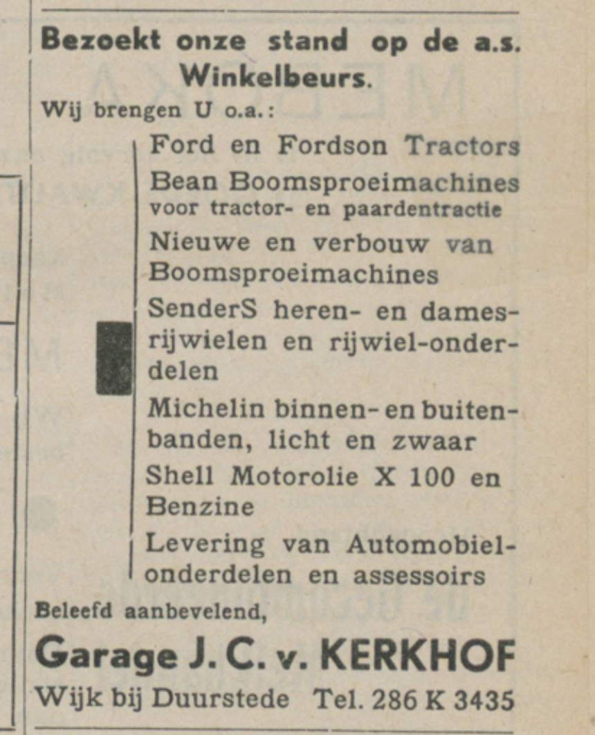 Nog in dezelfde Wijkse Courant plaatste hij een advertentie met het merk brandblusser en dat ze te koop zijn bij de garage!
